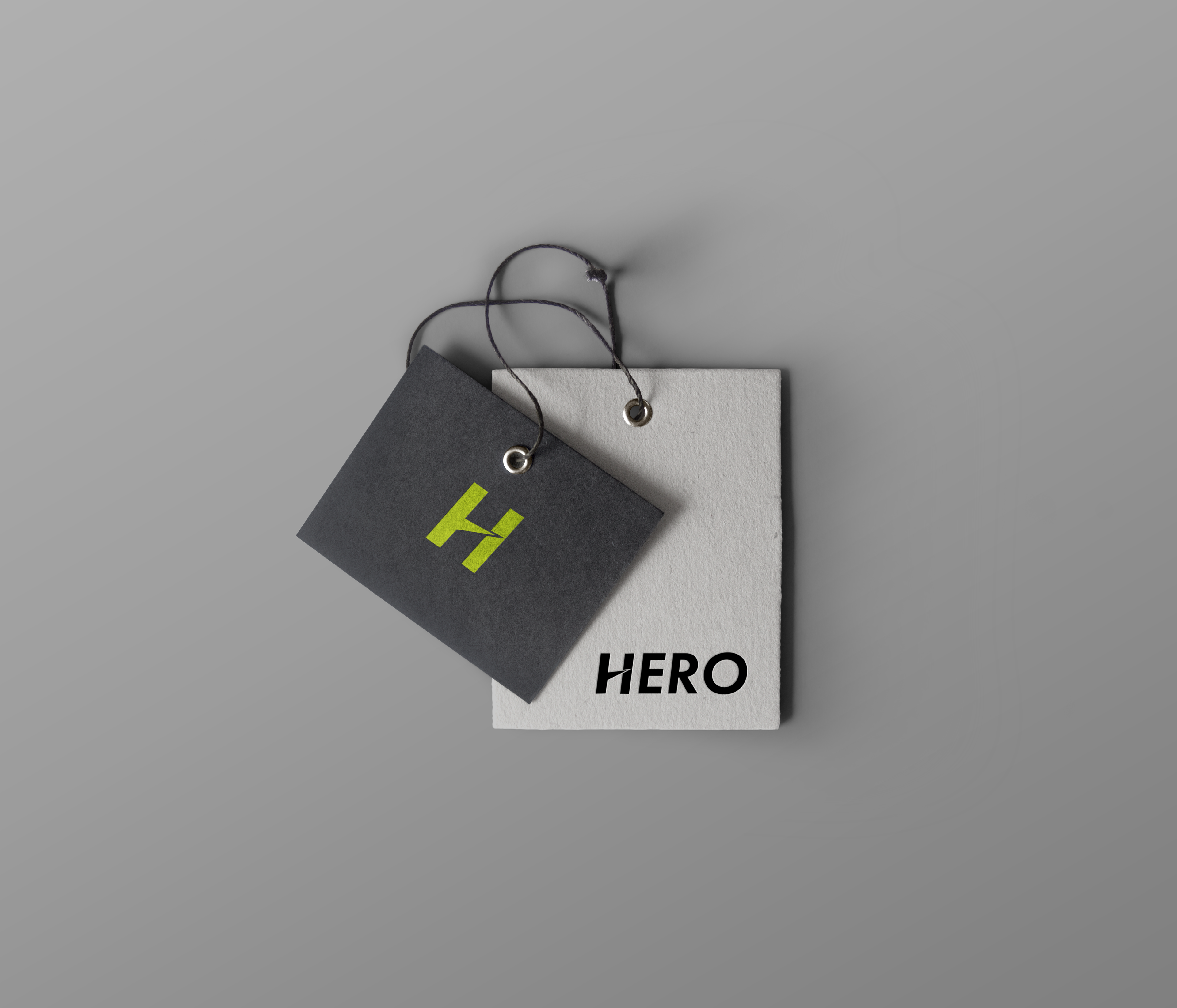 Tehtävänannossa asiakas oli toivonut typografista (wordmark) ratkaisua, jota on helppo käyttää esim. vaatteissa. Hero sanan H-kirjain muodostuu hieman salamaa muistuttavasta dynaamisesta muodosta ja brändin värimaailma sai inspiraationsa myös tästä ajatuksesta.